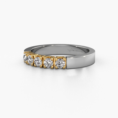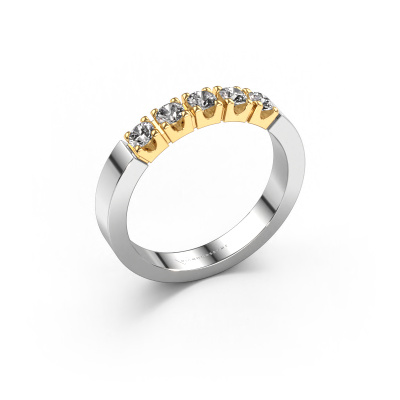 This extraordinary ring is called Dana 5. This type of ring is known as a memoire ring, because its gemstones are set in a continuous line. This makes it easy to combine with other rings. The band of this 14 Carat white gold ring is set in a combination of zirconia and diamond 3 mm. You can easily choose the combination you prefer online. As you can see, a single zirconia is set in this single alliance white gold ring. The memoire ring represents collaboration. And that is precisely what these gemstones do, collaborate. Together they add a beautiful effect to the band of a modern ring! Such a meaningful ring, wouldn't you agree? All our hand selected cz-stones are positioned by hand by our expert goldsmith. It's a precise task, which can only be completed successfully through the combination of pure craftsmanship and usage of the latest techniques which give it an optimal effect. To create a perfect reflection of light, all the gemstones have to be perfectly aligned in the same way. During manufacturing, the expert goldsmith will therefore monitor the reflection of light constantly to check whether the cz-stones are aligned properly. This requires a skilled hand and a lot of patience but then the end product will be a true piece of art. And that is our mission!Because we design and deliver our own rings, we can offer you a ring at a price you won't find anywhere else. A ring is made to order, which helps prevent excess supplies, so we can make you a great price offer. We understand it feels risky, buying your ring online, but we will gladly assist in the designing process, taking your budget into consideration.New jewellery designs are added to our online collection daily. Our team of passionate designers strive to create extraordinary and diverse designs. Have you seen a ring you like? Please feel free to contact us. Based on a good price/ quality ratio, we will make you an offer you can't refuse!To make it easier for you, we offer a 30 day return policy. Check our terms and conditions.