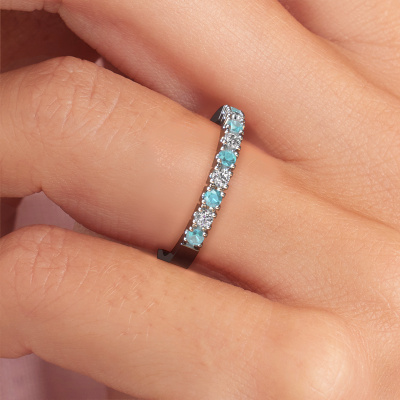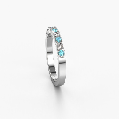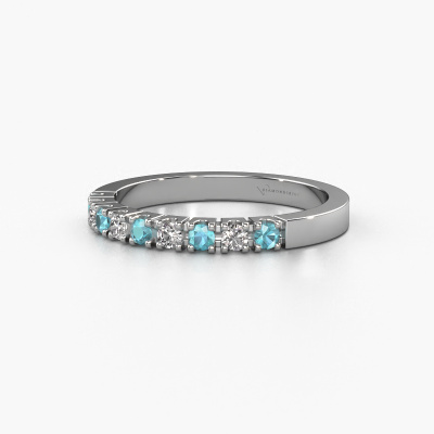 This extraordinary ring is called Dana 9. This type of ring is known as a memoire ring, because its gemstones are set in a continuous line. This makes it easy to combine with other rings. The band of this platinum ring is set in a combination of blue topaz and diamond 2 mm. You can easily choose the combination you prefer online. As you can see, a single blue topaz is set in this single alliance platinum ring. The memoire ring represents collaboration. And that is precisely what these gemstones do, collaborate. Together they add a beautiful effect to the band of a modern ring! Such a meaningful ring, wouldn't you agree? All our hand selected blue topaz are positioned by hand by our expert goldsmith. It's a precise task, which can only be completed successfully through the combination of pure craftsmanship and usage of the latest techniques which give it an optimal effect. To create a perfect reflection of light, all the gemstones have to be perfectly aligned in the same way. During manufacturing, the expert goldsmith will therefore monitor the reflection of light constantly to check whether the blue topaz are aligned properly. This requires a skilled hand and a lot of patience but then the end product will be a true piece of art. And that is our mission!After receiving your order, our goldsmiths will passionately start the creative process of making your ring in our own studio. Because we don't have a big stockpile, these costs will not be passed on to you. Our pricing is proof of that! We offer top quality jewels at lowest price, guaranteed.Our talented designers add new designs to our online collection daily. Together they create a diverse collection of the finest jewellery. If you prefer to make a ring according your own design, please feel free to request a quote. We will make you an amazing offer, based on quality and price.To make it easier for you, we offer a 30 day return policy. Check our terms and conditions.