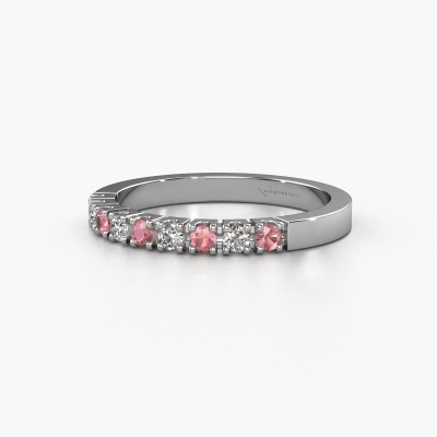 This extraordinary ring is called Dana 9. This type of ring is known as a memoire ring, because its gemstones are set in a continuous line. This makes it easy to combine with other rings. The band of this 14 Carat white gold ring is set in a combination of tourmaline pink and diamond 2 mm. You can easily choose the combination you prefer online. As you can see, a single tourmaline pink is set in this single alliance white gold ring. The memoire ring represents collaboration. And that is precisely what these gemstones do, collaborate. Together they add a beautiful effect to the band of a modern ring! Such a meaningful ring, wouldn't you agree? All our hand selected tourmaline pink are positioned by hand by our expert goldsmith. It's a precise task, which can only be completed successfully through the combination of pure craftsmanship and usage of the latest techniques which give it an optimal effect. To create a perfect reflection of light, all the gemstones have to be perfectly aligned in the same way. During manufacturing, the expert goldsmith will therefore monitor the reflection of light constantly to check whether the tourmaline pink are aligned properly. This requires a skilled hand and a lot of patience but then the end product will be a true piece of art. And that is our mission!After receiving your order, our goldsmiths will passionately start the creative process of making your ring in our own studio. Because we don't have a big stockpile, these costs will not be passed on to you. Our pricing is proof of that! We offer top quality jewels at lowest price, guaranteed.Our talented designers add new designs to our online collection daily. Together they create a diverse collection of the finest jewellery. If you prefer to make a ring according your own design, please feel free to request a quote. We will make you an amazing offer, based on quality and price.To make it easier for you, we offer a 30 day return policy. Check our terms and conditions.
