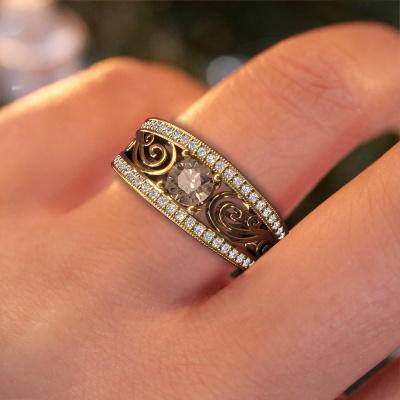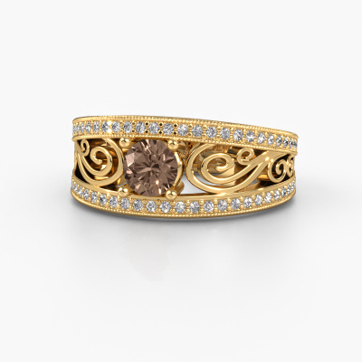 Do you have a vintage fetish? Then this gold Julliana ring suits you perfectly. It's a contemporary design, based on vintage designs. A slightly romantic, extraordinary design! Even more when you customize to your liking. This ajour ring is set with exquisite brown diamonds. As you can see, you can simply choose a gemstone that matches your style. Each gemstone is carefully selected by our merchants whom are spread throughout the world. Nothing but the best gems for our expert goldsmith! After all, it is his crowning glory!The ajour Julliana ring, as shown here, can be customized to your liking. Our online tool offers many different options but please feel free to contact us if you want changes made to your Julliana ring, which are unavailable in our online tool.After receiving your order, our goldsmiths will start the creative process of making your Julliana ring. We don't keep stock. This is advantageous because these costs will not be passed on to you. Therefore, we can offer jewellery at exceptionally low prices.To make it easier for you, we offer a 30 day return policy. Check our terms and conditions.