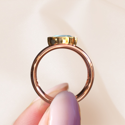 Are you looking for a birthstones ring with an eye-catching single gemstone? How do you like this Anouschka ring? This rose gold Anouschka ring is set with a beautiful 8x6 mm oval aquamarine. The aquamarine is carefully selected by our aquamarine suppliers. Subsequently, these birthstones are then set by our goldsmith according to ancient tradition. The ring will then be polished to perfection creating a unique ring with a stunning aquamarine. Created especially for you. Our goldsmiths passionately create your customized ring to your liking with the utmost care. The rose gold ring, as shown here, can be customized using our online tool. Feel free to ask our jewel designers for assistance if you want changes made which are unavailable in our online tool. We are happy to answer your questions.After receiving your order, our goldsmiths will passionately start the creative process of making your ring in our own studio. Because we don't have a big stockpile, these costs will not be passed on to you. Our pricing is proof of that! We offer top quality jewels at lowest price, guaranteed.To make it easier for you, we offer a 30 day return policy. Check our terms and conditions.