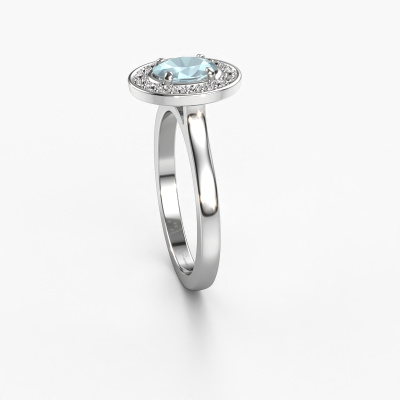 The ring shown above is called Madelon 1. This type of ring is known as a solitaire ring. The platinum ring is set with a 7x5 mm oval aquamarine centre stone surrounded by smaller sized diamonds. This best price platinum halo ring, is set with a big aquamarine embraced by smaller sized gemstones. The ring got its name for its halo which the smaller sized diamonds help create. In order to achieve a stunning halo, these smaller sized gemstones have to be aligned perfectly so light reflects evenly on the aquamarine from every angle. And our expert goldsmiths get the job done. Each carefully selected aquamarine is set by hand with utmost precision. During manufacturing, light fall is constantly monitored to make sure the special halo effect is still visible. In the end you get a unique ring with a radiant aquamarine gemstone centrepiece. An exquisite ring indeed! The best part of this best price ring is that you can customize it to your own liking. Your style, your choice, your ring. On top of that, your classic platinum ring will be made by hand with eco-friendly materials! Please feel free to easily customize the ring, using our online tool.Are you on a budget? Please feel free to contact us, so we can go discuss your options. We offer our rings at guaranteed best price, because we make them to order. You won't find such a price anywhere else!To make it easier for you, we offer a 30 day return policy. Check our terms and conditions.