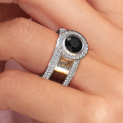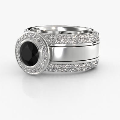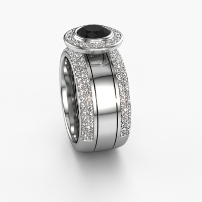 Because of its detailed finish, this wide ring with black diamond has a stylish appearance. A pavé set ring that fits the contemporary woman like a glove. This platinum ring, our Roxie, is a true eye-catcher indeed! As soon as we know what you