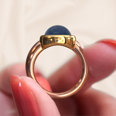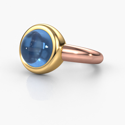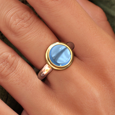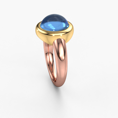 In this photo the rose gold Jenae ring is set with a cabochon blue topaz. Cabochon means a blue topaz is shaped first, not faceted, into a specific shape, such as a drop, heart or round cabochon. Subsequently, it is polished until the gemstone has a orb shaped surface. A cabochon gemstone is a stunning, classy eye-catcher that matches perfectly with a contemporary as well as a vintage style. Our expert goldsmiths shape the beautiful ring to perfection which makes it unique. The cabochon blue topaz is set so its unique qualities are strengthened. A customized trendy ring is the perfect gift! New exquisite designs are added daily by our team of passionate goldsmiths. And each design can be customized. Simply customize the precious metals and the colour of gemstones which will be used, for example. This makes your design of the trendy Jenae ring truly unique!By using a combination of the latest modern techniques, combined with ancient crafting, we can make all our rings in our own studio. Each jewel is made to order. This is advantageous because we can offer you a price you won't find anywhere else.To make it easier for you, we offer a 30 day return policy. Check our terms and conditions.
