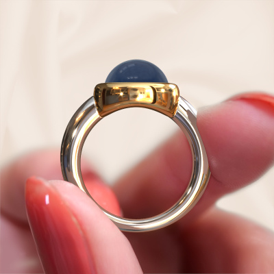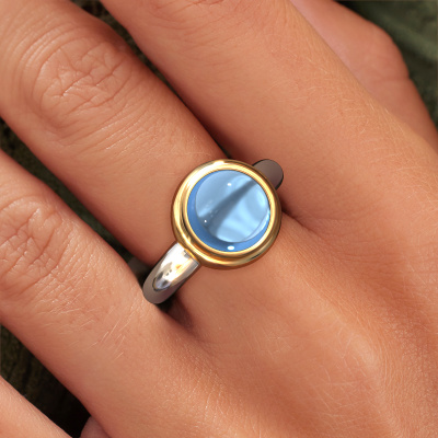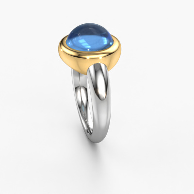 In this photo the white gold Jenae ring is set with a cabochon blue topaz. Cabochon means a blue topaz is shaped first, not faceted, into a specific shape, such as a drop, heart or round cabochon. Subsequently, it is polished until the gemstone has a orb shaped surface. A cabochon gemstone is a stunning, classy eye-catcher that matches perfectly with a contemporary as well as a vintage style. Our expert goldsmiths shape the beautiful ring to perfection which makes it unique. The cabochon blue topaz is set so its unique qualities are strengthened. A customized trendy ring is the perfect gift! New exquisite designs are added daily by our team of passionate goldsmiths. And each design can be customized. Simply customize the precious metals and the colour of gemstones which will be used, for example. This makes your design of the trendy Jenae ring truly unique!By using a combination of the latest modern techniques, combined with ancient crafting, we can make all our rings in our own studio. Each jewel is made to order. This is advantageous because we can offer you a price you won't find anywhere else.To make it easier for you, we offer a 30 day return policy. Check our terms and conditions.