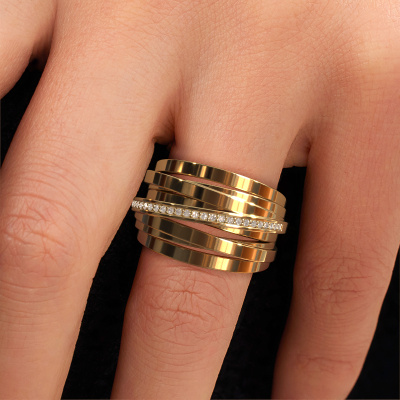 Because of its detailed finish, this wide ring with brown diamond has a stylish appearance. A shanks ring that fits the contemporary woman like a glove. This gold ring, our Swinda, is a true eye-catcher indeed! As soon as we know what you desire, we will create your ring in our own crafting studio. We work according an innovative process. We use a combination of the latest techniques and ancient traditional craftsmanship, so we are able to create a perfectly designed ring. Our expert goldsmiths strive for perfection so they won't stop until a perfect ring, a true work of art, is created especially for you!A customized unique ring is the perfect gift! New exquisite designs are added daily by our team of passionate goldsmiths. And each design can be customized. Simply customize the precious metals and the colour of gemstones which will be used, for example. This makes your design of the unique Swinda ring truly unique!Because we design and deliver our own rings, we can offer you a ring at a price you won't find anywhere else. A ring is made to order, which helps prevent excess supplies, so we can make you a great price offer. We understand it feels risky, buying your ring online, but we will gladly assist in the designing process, taking your budget into consideration.To make it easier for you, we offer a 30 day return policy. Check our terms and conditions.