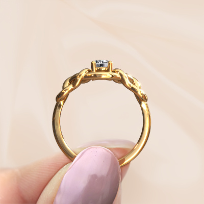 This symbolic gold Zoe ring is set with diamond. For some, a ring is nothing more than a beautiful fashion item but they can become a meaningful keepsake. A ring such as this can be worn daily and it matches numerous different styles. Designing your own unique ring, makes it even more special. You are reminded of its uniqueness every time you look at it. Perhaps it reminds you of someone special. It might bring back memories. Unforgettable moments, represented in one ring. The beauty of it all is that the used precious metals and gemstones will last a lifetime. A lifetime of memories deserves nothing less! The best part of this knot ring is that you can customize it to your own liking. Your style, your choice, your ring. On top of that, your Celtic gold ring will be made by hand with eco-friendly materials! Please feel free to easily customize the ring, using our online tool.By using our modern techniques, we can design and customize the finest quality jewels with the utmost care for you. Our rings are always priced 30 percent lower than other jewellers. We make rings to order, so we don't have to maintain a large stock. If you have a certain budget, we are more than happy to advice you accordingly.To make it easier for you, we offer a 30 day return policy. Check our terms and conditions.