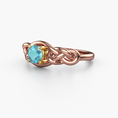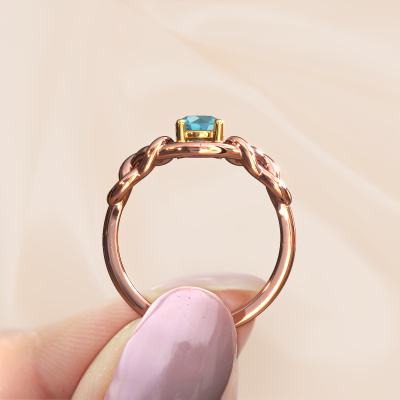 This symbolic rose gold Zoe ring is set with blue topaz. For some, a ring is nothing more than a beautiful fashion item but they can become a meaningful keepsake. A ring such as this can be worn daily and it matches numerous different styles. Designing your own unique ring, makes it even more special. You are reminded of its uniqueness every time you look at it. Perhaps it reminds you of someone special. It might bring back memories. Unforgettable moments, represented in one ring. The beauty of it all is that the used precious metals and gemstones will last a lifetime. A lifetime of memories deserves nothing less! The best part of this knot ring is that you can customize it to your own liking. Your style, your choice, your ring. On top of that, your Celtic rose gold ring will be made by hand with eco-friendly materials! Please feel free to easily customize the ring, using our online tool.By using our modern techniques, we can design and customize the finest quality jewels with the utmost care for you. Our rings are always priced 30 percent lower than other jewellers. We make rings to order, so we don't have to maintain a large stock. If you have a certain budget, we are more than happy to advice you accordingly.To make it easier for you, we offer a 30 day return policy. Check our terms and conditions.