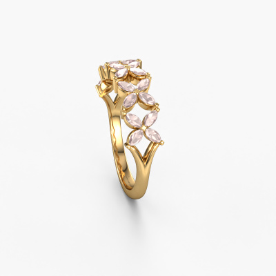 This Bree ring in 14 Carat gold is set with morganite champagne. This gold stacked Bree ring is the perfect addition to your ring collection! As the name suggests, it is a ring which can be combined on one finger with another ring. It gives you the opportunity to create your own style. A stacked ring usually represents a certain memory of someone special or a memorable moment. It is common to combine a stacked ring, representing an anniversary, with a wedding ring. But this cluster ring, combined with your other rings, also makes a classy fashion item.