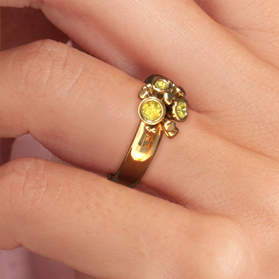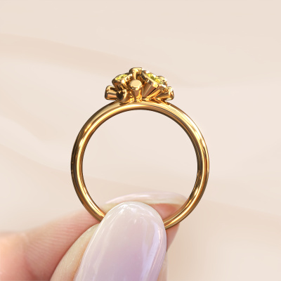 How would you describe your own style? Are you looking for something uniquely different? This flower gold Pameila ring is astonishing! Simply customize to your or her own liking. This ring is set with yellow sapphire. These yellow sapphire have been carefully selected because your ring must be adorned with nothing but the most beautiful gemstone. Wouldn't you agree? Our expert goldsmith will create your ring in our own crafting studios, where the yellow sapphire will be set with care. The ring will then be polished to perfection to give it that extra sparkle. It's a perfect ring for a woman of excellent taste!How do you like this contemporary gold ring? Simply customize this Pameila ring, using our online tool. Subsequently, your personal flower Pameila ring will be made by hand by our goldsmiths. Precious metals and gemstones can be customized to your liking. Do you have specific preferences which are unavailable in our online tool? Please feel free to contact us. We will customize your personal contemporary ring to your liking.Are you on a budget? Please feel free to contact us, so we can go discuss your options. We offer our rings at guaranteed best price, because we make them to order. You won't find such a price anywhere else!To make it easier for you, we offer a 30 day return policy. Check our terms and conditions.