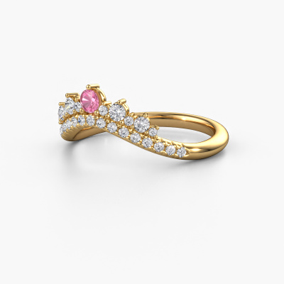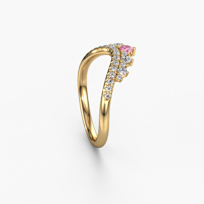 This Nica D stackable ring in 14 Carat gold is set with pink sapphire. This gold stacked Nica D ring is the perfect addition to your ring collection! As the name suggests, it is a ring which can be combined on one finger with another ring. It gives you the opportunity to create your own style. A stacked ring usually represents a certain memory of someone special or a memorable moment. It is common to combine a stacked ring, representing an anniversary, with a wedding ring. But this contemporary ring, combined with your other rings, also makes a classy fashion item. As soon as you finished designing your Nica D stackable ring with our online tool, our goldsmiths will start their creative process of making your ring. This will be done with passion and care, according ancient crafting. On top of that, our jewels are made of eco-friendly materials. Simply customize online with our online tool, if you want any changes made. If you want specific changes made to your Nica D stackable ring, that are unavailable in our online tool, please feel free to contact our expert designers.After receiving your order, our goldsmiths will start the creative process of making your Nica D ring. We don't keep stock. This is advantageous because these costs will not be passed on to you. Therefore, we can offer jewellery at exceptionally low prices.To make it easier for you, we offer a 30 day return policy. Check our terms and conditions.