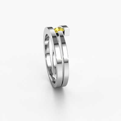 This ring called Sandy is made of 14 Carat white gold and is set with yellow sapphire. Are you in the market for a unique white gold ring with a modern twist? Then this ring might suit you. Simply customize to your or her liking. It suits the contemporary modern woman. This contemporary ring is set with beautiful yellow sapphire. This has been carefully selected. Because your ring must be adorned with nothing but the most stunning gemstone. Our expert goldsmith will create your ring in our own studio, where the yellow sapphire will be set with great care. The ring will then be polished to perfection to create a stunning ring. Are you on a budget? Please feel free to contact us, so we can go discuss your options. We offer our rings at guaranteed best price, because we make them to order. You won't find such a price anywhere else!Our talented designers add new designs to our online collection daily. Together they create a diverse collection of the finest jewellery. If you prefer to make a ring according your own design, please feel free to request a quote. We will make you an amazing offer, based on quality and price.To make it easier for you, we offer a 30 day return policy. Check our terms and conditions.