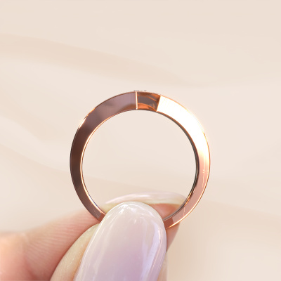 This ring called Elize is made of 14 Carat rose gold and is set with diamond. Are you in the market for a unique rose gold ring with a modern twist? Then this ring might suit you. Simply customize to your or her liking. It suits the contemporary modern woman. This edgy ring is set with beautiful diamond. This has been carefully selected. Because your ring must be adorned with nothing but the most stunning gemstone. Our expert goldsmith will create your ring in our own studio, where the diamond will be set with great care. The ring will then be polished to perfection to create a stunning ring. Are you on a budget? Please feel free to contact us, so we can go discuss your options. We offer our rings at guaranteed best price, because we make them to order. You won't find such a price anywhere else!New jewellery designs are added to our online collection daily. Our team of passionate designers strive to create extraordinary and diverse designs. Have you seen a ring you like? Please feel free to contact us. Based on a good price/ quality ratio, we will make you an offer you can't refuse!To make it easier for you, we offer a 30 day return policy. Check our terms and conditions.