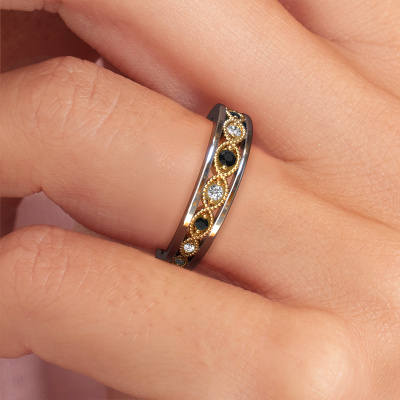 Do you have a vintage fetish? Then this white gold Laine stackable ring suits you perfectly. It's a contemporary design, based on vintage designs. A slightly romantic, extraordinary design! Even more when you customize to your liking. This elegant stackable ring is set with exquisite black diamonds. As you can see, you can simply choose a gemstone that matches your style. Each gemstone is carefully selected by our merchants whom are spread throughout the world. Nothing but the best gems for our expert goldsmith! After all, it is his crowning glory!A customized vintage stackable ring is the perfect gift! New exquisite designs are added daily by our team of passionate goldsmiths. And each design can be customized. Simply customize the precious metals and the colour of gemstones which will be used, for example. This makes your design of the vintage Laine stackable ring truly unique!Because we design and deliver our own rings, we can offer you a ring at a price you won't find anywhere else. A ring is made to order, which helps prevent excess supplies, so we can make you a great price offer. We understand it feels risky, buying your ring online, but we will gladly assist in the designing process, taking your budget into consideration.To make it easier for you, we offer a 30 day return policy. Check our terms and conditions.