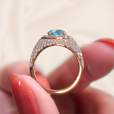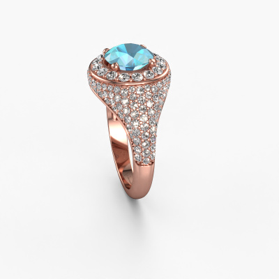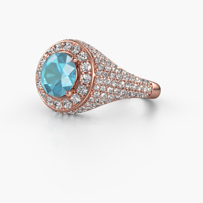 This pave set ring is called Dayle. This 14 Carat rose gold ring is set with blue topaz 7 mm. The band of this rose gold ring is set with rows of blue topaz which seem to have no beginning nor end. Our goldsmith carefully selects the gemstones and sets them with the utmost precision. For maximum shine, the blue topaz have to align perfectly. While artfully crafting and polishing the jewellery, light fall is constantly monitored, until the expert goldsmith is satisfied with the result. Designed by you, created especially for you!The best part of this elegant ring is that you can customize it to your own liking. Your style, your choice, your ring. On top of that, your exclusive rose gold ring will be made by hand with eco-friendly materials! Please feel free to easily customize the ring, using our online tool.Are you on a budget? Please feel free to contact us, so we can go discuss your options. We offer our rings at guaranteed best price, because we make them to order. You won't find such a price anywhere else!To make it easier for you, we offer a 30 day return policy. Check our terms and conditions.