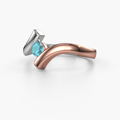 This ring called Amy is made of 14 Carat rose gold and is set with blue topaz. Are you in the market for a unique rose gold ring with a modern twist? Then this ring might suit you. Simply customize to your or her liking. It suits the contemporary modern woman. This elegant ring is set with beautiful blue topaz. This has been carefully selected. Because your ring must be adorned with nothing but the most stunning gemstone. Our expert goldsmith will create your ring in our own studio, where the blue topaz will be set with great care. The ring will then be polished to perfection to create a stunning ring. By using a combination of the latest modern techniques, combined with ancient crafting, we can make all our rings in our own studio. Each jewel is made to order. This is advantageous because we can offer you a price you won't find anywhere else.
