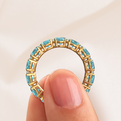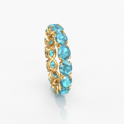 This is our Vivienne OVL 5x4 ring. This specific type is called an eternity ring and it is set with a continuous line of identically cut gemstones. The ring is made in 14 Carat gold and is set with small blue topaz, 5x4 mm. This gold Eternity ring is a perfectly beautiful and meaningful way to give your proposal that special touch. The magnificent evenly shaped blue topaz are pave set around the ring. The identical blue topaz are carefully selected to give the ring a maximum effect. Do keep in mind we use natural resources so small differences between stones are common. The special effect is enhanced due to precise positioning of the blue topaz. This requires the utmost precision and a skilful hand but for our skilled artisans this is what excites them. The result is a ring with a row of blue topaz which seem to have no beginning nor end. The perfect symbol of your love for her! Isn't she a beauty?By using our modern techniques, we can design and customize the finest quality jewels with the utmost care for you. Our rings are always priced 30 percent lower than other jewellers. We make rings to order, so we don't have to maintain a large stock. If you have a certain budget, we are more than happy to advice you accordingly.New jewellery designs are added to our online collection daily. Our team of passionate designers strive to create extraordinary and diverse designs. Have you seen a ring you like? Please feel free to contact us. Based on a good price/ quality ratio, we will make you an offer you can't refuse!To make it easier for you, we offer a 30 day return policy. Check our terms and conditions.