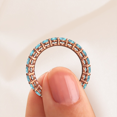 This Heddy OVL 3x5 stackable ring in 14 Carat rose gold is set with blue topaz. This rose gold stacked Heddy OVL 3x5 ring is the perfect addition to your ring collection! As the name suggests, it is a ring which can be combined on one finger with another ring. It gives you the opportunity to create your own style. A stacked ring usually represents a certain memory of someone special or a memorable moment. It is common to combine a stacked ring, representing an anniversary, with a wedding ring. But this eternity ring, combined with your other rings, also makes a classy fashion item. Customize your own eternityHeddy OVL 3x5 stackable ring, which will then be created by our goldsmiths with great passion. Do you prefer a different option than is shown here in the rose gold Heddy OVL 3x5 stackable ring? Then our online tools offers various options. Feel free to ask us for help if you are unable to succeed. We are happy to answer your questions!Because we design and deliver our own rings, we can offer you a ring at a price you won't find anywhere else. A ring is made to order, which helps prevent excess supplies, so we can make you a great price offer. We understand it feels risky, buying your ring online, but we will gladly assist in the designing process, taking your budget into consideration.To make it easier for you, we offer a 30 day return policy. Check our terms and conditions.