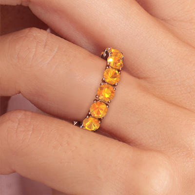 This Vivienne 4.0 stackable ring in 14 Carat rose gold is set with citrin. This rose gold stacked Vivienne 4.0 ring is the perfect addition to your ring collection! As the name suggests, it is a ring which can be combined on one finger with another ring. It gives you the opportunity to create your own style. A stacked ring usually represents a certain memory of someone special or a memorable moment. It is common to combine a stacked ring, representing an anniversary, with a wedding ring. But this eternity ring, combined with your other rings, also makes a classy fashion item. A customized modern stackable ring is the perfect gift! New exquisite designs are added daily by our team of passionate goldsmiths. And each design can be customized. Simply customize the precious metals and the colour of gemstones which will be used, for example. This makes your design of the modern Vivienne 4.0 stackable ring truly unique!Because we design and deliver our own rings, we can offer you a ring at a price you won't find anywhere else. A ring is made to order, which helps prevent excess supplies, so we can make you a great price offer. We understand it feels risky, buying your ring online, but we will gladly assist in the designing process, taking your budget into consideration.To make it easier for you, we offer a 30 day return policy. Check our terms and conditions.