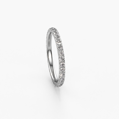 This is our Jackie 1.7 ring. This specific type is called an eternity ring and it is set with a continuous line of identically cut gemstones. The ring is made in 14 Carat white gold and is set with small diamonds, 0.02 crt. This white gold Eternity ring is a perfectly beautiful and meaningful way to give your proposal that special touch. The magnificent evenly shaped diamonds are pave set around the ring. The identical diamonds are carefully selected to give the ring a maximum effect. Do keep in mind we use natural resources so small differences between stones are common. The special effect is enhanced due to precise positioning of the diamonds. This requires the utmost precision and a skilful hand but for our skilled artisans this is what excites them. The result is a stackable ring with a row of diamonds which seem to have no beginning nor end. The perfect symbol of your love for her! Isn't she a beauty?After receiving your order, our goldsmiths will passionately start the creative process of making your ring in our own studio. Because we don't have a big stockpile, these costs will not be passed on to you. Our pricing is proof of that! We offer top quality jewels at lowest price, guaranteed.Our talented designers add new designs to our online collection daily. Together they create a diverse collection of the finest jewellery. If you prefer to make a ring according your own design, please feel free to request a quote. We will make you an amazing offer, based on quality and price.To make it easier for you, we offer a 30 day return policy. Check our terms and conditions.