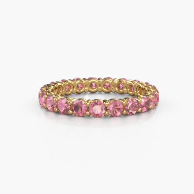 This is our Heddy rnd 2.9 ring. This specific type is called an eternity ring and it is set with a continuous line of identically cut gemstones. The ring is made in 14 Carat gold and is set with small tourmaline pink, 2.9 mm. The amazing tourmaline pink are identical in size and are set in the ring band. Our tourmaline pink are selected with great care so they are identical, which gives the best result. In order to get the best result, our artisans position all tourmaline pink by hand with the utmost care. Our Goldsmiths have one ambition, which is creating the perfect ring. That is why we love what we do. In the end you get a stunning classic gold ring with a row of tourmaline pink which seem to have no beginning nor end. The perfect symbol of your undying love for her! How special is that!By using a combination of the latest modern techniques, combined with ancient crafting, we can make all our rings in our own studio. Each jewel is made to order. This is advantageous because we can offer you a price you won't find anywhere else.
