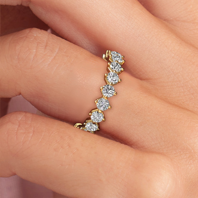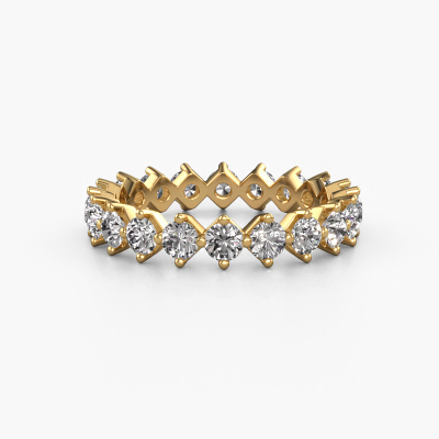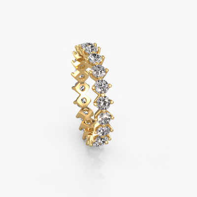 This is our Janie 3.0mm ring. This specific type is called an eternity ring and it is set with a continuous line of identically cut gemstones. The ring is made in 14 Carat gold and is set with small lab-grown diamonds, 2.00 crt. The amazing lab-grown diamonds are identical in size and are set in the ring band. Our lab-grown diamonds are selected with great care so they are identical, which gives the best result. In order to get the best result, our artisans position all lab-grown diamonds by hand with the utmost care. Our Goldsmiths have one ambition, which is creating the perfect ring. That is why we love what we do. In the end you get a stunning fantasy gold stackable ring with a row of lab-grown diamonds which seem to have no beginning nor end. The perfect symbol of your undying love for her! How special is that!By using a combination of the latest modern techniques, combined with ancient crafting, we can make all our rings in our own studio. Each jewel is made to order. This is advantageous because we can offer you a price you won't find anywhere else.