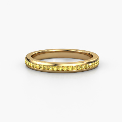 This is our Lura 1 ring. This specific type is called an eternity ring and it is set with a continuous line of identically cut gemstones. The ring is made in 14 Carat gold and is set with small yellow sapphire, 1.3 mm. The amazing yellow sapphire are identical in size and are set in the ring band. Our yellow sapphire are selected with great care so they are identical, which gives the best result. In order to get the best result, our artisans position all yellow sapphire by hand with the utmost care. Our Goldsmiths have one ambition, which is creating the perfect ring. That is why we love what we do. In the end you get a stunning modern gold stackable ring with a row of yellow sapphire which seem to have no beginning nor end. The perfect symbol of your undying love for her! How special is that!Because we design and deliver our own rings, we can offer you a ring at a price you won't find anywhere else. A ring is made to order, which helps prevent excess supplies, so we can make you a great price offer. We understand it feels risky, buying your ring online, but we will gladly assist in the designing process, taking your budget into consideration.Our talented designers add new designs to our online collection daily. Together they create a diverse collection of the finest jewellery. If you prefer to make a ring according your own design, please feel free to request a quote. We will make you an amazing offer, based on quality and price.To make it easier for you, we offer a 30 day return policy. Check our terms and conditions.