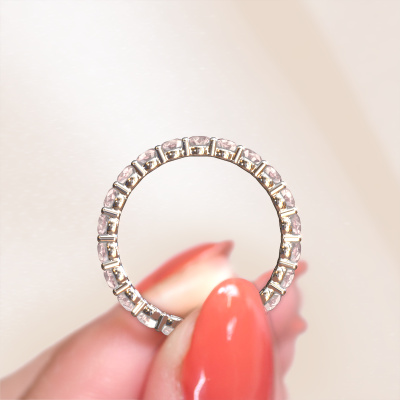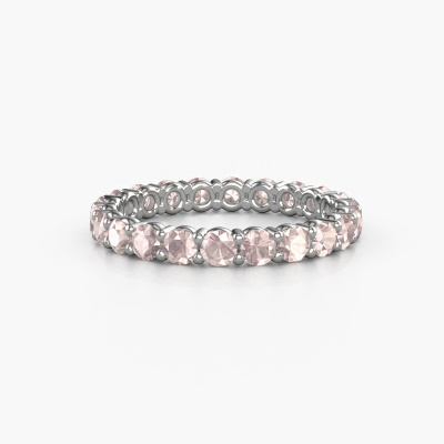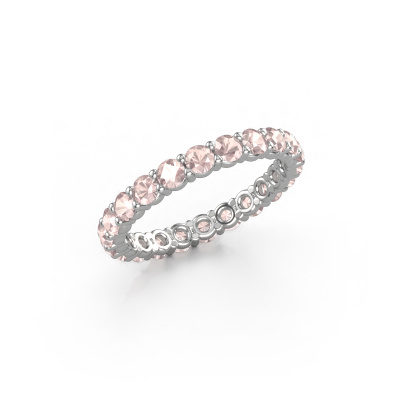 This is our Heddy rnd 2.7 ring. This specific type is called an eternity ring and it is set with a continuous line of identically cut gemstones. The ring is made in 14 Carat white gold and is set with small morganite champagne, 2.7 mm. This white gold Eternity ring is a perfectly beautiful and meaningful way to give your proposal that special touch. The magnificent evenly shaped morganite champagne are pave set around the ring. The identical morganite champagne are carefully selected to give the ring a maximum effect. Do keep in mind we use natural resources so small differences between stones are common. The special effect is enhanced due to precise positioning of the morganite champagne. This requires the utmost precision and a skilful hand but for our skilled artisans this is what excites them. The result is a stackable ring with a row of morganite champagne which seem to have no beginning nor end. The perfect symbol of your love for her! Isn't she a beauty?