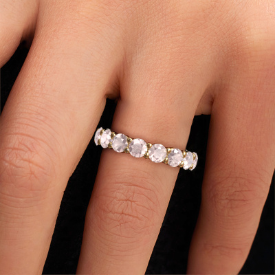 This Heddy rnd 4.0 stackable ring in 14 Carat gold is set with morganite champagne. This gold stacked Heddy rnd 4.0 ring is the perfect addition to your ring collection! As the name suggests, it is a ring which can be combined on one finger with another ring. It gives you the opportunity to create your own style. A stacked ring usually represents a certain memory of someone special or a memorable moment. It is common to combine a stacked ring, representing an anniversary, with a wedding ring. But this eternity ring, combined with your other rings, also makes a classy fashion item. How do you like this exclusive gold stackable ring? Simply customize this Heddy rnd 4.0 stackable ring, using our online tool. Subsequently, your personal eternity Heddy rnd 4.0 stackable ring will be made by hand by our goldsmiths. Precious metals and gemstones can be customized to your liking. Do you have specific preferences which are unavailable in our online tool? Please feel free to contact us. We will customize your personal exclusive stackable ring to your liking.Are you on a budget? Please feel free to contact us, so we can go discuss your options. We offer our rings at guaranteed best price, because we make them to order. You won't find such a price anywhere else!To make it easier for you, we offer a 30 day return policy. Check our terms and conditions.