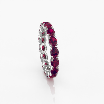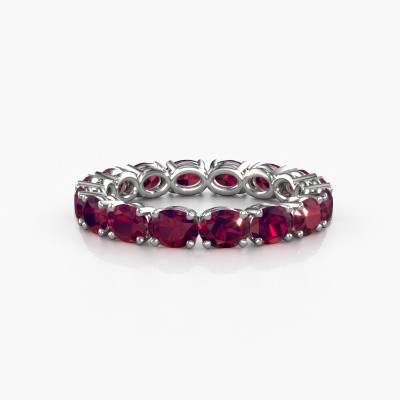 This is our Vivienne OVL 4x3 ring. This specific type is called an eternity ring and it is set with a continuous line of identically cut gemstones. The ring is made in 14 Carat white gold and is set with small rhodolite, 4x3 mm. This white gold Eternity ring is a perfectly beautiful and meaningful way to give your proposal that special touch. The magnificent evenly shaped rhodolite are pave set around the ring. The identical rhodolite are carefully selected to give the ring a maximum effect. Do keep in mind we use natural resources so small differences between stones are common. The special effect is enhanced due to precise positioning of the rhodolite. This requires the utmost precision and a skilful hand but for our skilled artisans this is what excites them. The result is a ring with a row of rhodolite which seem to have no beginning nor end. The perfect symbol of your love for her! Isn't she a beauty?Because we design and deliver our own rings, we can offer you a ring at a price you won't find anywhere else. A ring is made to order, which helps prevent excess supplies, so we can make you a great price offer. We understand it feels risky, buying your ring online, but we will gladly assist in the designing process, taking your budget into consideration.Our team of talented, passionate designers add new ring designs to our online collection daily. Our objective in doing so, is to be able to offer you a wide variety of jewels. Please feel free to request a quote if you have specific wishes for your ring. We guarantee to make you an offer you can't refuse.To make it easier for you, we offer a 30 day return policy. Check our terms and conditions.
