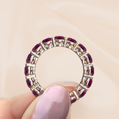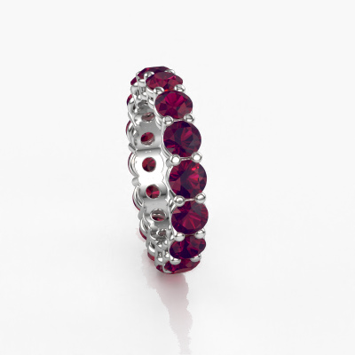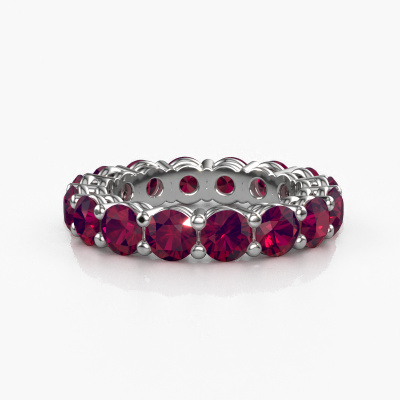 This is our Michelle full 4.2 ring. This specific type is called an eternity ring and it is set with a continuous line of identically cut gemstones. The ring is made in 14 Carat white gold and is set with small rhodolite, 4.2 mm. This white gold Eternity ring is a perfectly beautiful and meaningful way to give your proposal that special touch. The magnificent evenly shaped rhodolite are pave set around the ring. The identical rhodolite are carefully selected to give the ring a maximum effect. Do keep in mind we use natural resources so small differences between stones are common. The special effect is enhanced due to precise positioning of the rhodolite. This requires the utmost precision and a skilful hand but for our skilled artisans this is what excites them. The result is a stackable ring with a row of rhodolite which seem to have no beginning nor end. The perfect symbol of your love for her! Isn't she a beauty?After receiving your order, our goldsmiths will start the creative process of making your Michelle full 4.2 ring. We don't keep stock. This is advantageous because these costs will not be passed on to you. Therefore, we can offer jewellery at exceptionally low prices.New jewellery designs are added to our online collection daily. Our team of passionate designers strive to create extraordinary and diverse designs. Have you seen a ring you like? Please feel free to contact us. Based on a good price/ quality ratio, we will make you an offer you can't refuse!To make it easier for you, we offer a 30 day return policy. Check our terms and conditions.