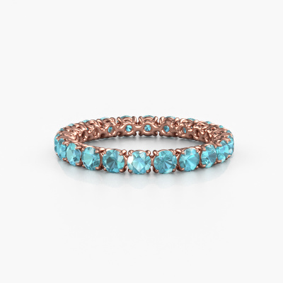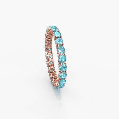 This is our Vivienne 2.7 ring. This specific type is called an eternity ring and it is set with a continuous line of identically cut gemstones. The ring is made in 14 Carat rose gold and is set with small blue topaz, 2.7 mm. The amazing blue topaz are identical in size and are set in the ring band. Our blue topaz are selected with great care so they are identical, which gives the best result. In order to get the best result, our artisans position all blue topaz by hand with the utmost care. Our Goldsmiths have one ambition, which is creating the perfect ring. That is why we love what we do. In the end you get a stunning classic rose gold ring with a row of blue topaz which seem to have no beginning nor end. The perfect symbol of your undying love for her! How special is that!After receiving your order, our goldsmiths will passionately start the creative process of making your ring in our own studio. Because we don't have a big stockpile, these costs will not be passed on to you. Our pricing is proof of that! We offer top quality jewels at lowest price, guaranteed.Our talented designers add new designs to our online collection daily. Together they create a diverse collection of the finest jewellery. If you prefer to make a ring according your own design, please feel free to request a quote. We will make you an amazing offer, based on quality and price.To make it easier for you, we offer a 30 day return policy. Check our terms and conditions.