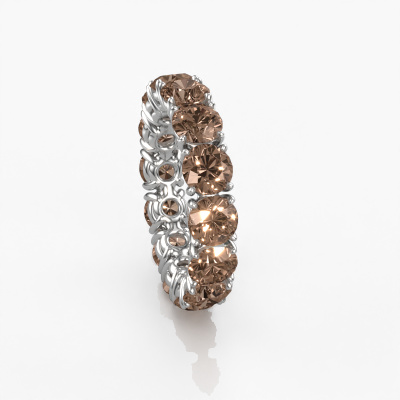 This is our Vivienne 5.0 ring. This specific type is called an eternity ring and it is set with a continuous line of identically cut gemstones. The ring is made in 14 Carat white gold and is set with small brown diamonds, 7.00 crt. The amazing brown diamonds are identical in size and are set in the ring band. Our brown diamonds are selected with great care so they are identical, which gives the best result. In order to get the best result, our artisans position all brown diamonds by hand with the utmost care. Our Goldsmiths have one ambition, which is creating the perfect ring. That is why we love what we do. In the end you get a stunning exclusive white gold ring with a row of brown diamonds which seem to have no beginning nor end. The perfect symbol of your undying love for her! How special is that!By using our modern techniques, we can design and customize the finest quality jewels with the utmost care for you. Our rings are always priced 30 percent lower than other jewellers. We make rings to order, so we don't have to maintain a large stock. If you have a certain budget, we are more than happy to advice you accordingly.New jewellery designs are added to our online collection daily. Our team of passionate designers strive to create extraordinary and diverse designs. Have you seen a ring you like? Please feel free to contact us. Based on a good price/ quality ratio, we will make you an offer you can't refuse!To make it easier for you, we offer a 30 day return policy. Check our terms and conditions.