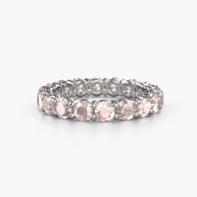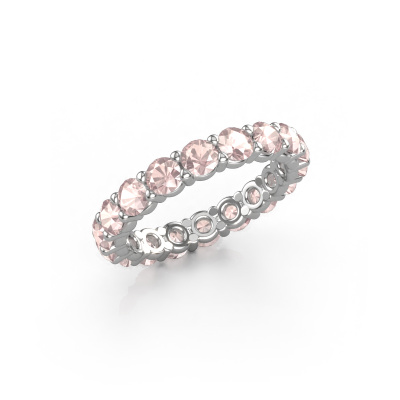 This is our Heddy rnd 3.4 ring. This specific type is called an eternity ring and it is set with a continuous line of identically cut gemstones. The ring is made in 14 Carat white gold and is set with small morganite champagne, 3.4 mm. The amazing morganite champagne are identical in size and are set in the ring band. Our morganite champagne are selected with great care so they are identical, which gives the best result. In order to get the best result, our artisans position all morganite champagne by hand with the utmost care. Our Goldsmiths have one ambition, which is creating the perfect ring. That is why we love what we do. In the end you get a stunning modern white gold ring with a row of morganite champagne which seem to have no beginning nor end. The perfect symbol of your undying love for her! How special is that!