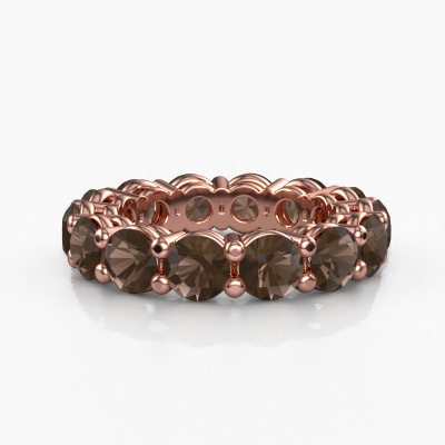 This is our Michelle full 4.7 ring. This specific type is called an eternity ring and it is set with a continuous line of identically cut gemstones. The ring is made in 14 Carat rose gold and is set with small smokey quartz, 4.7 mm. The amazing smokey quartz are identical in size and are set in the ring band. Our smokey quartz are selected with great care so they are identical, which gives the best result. In order to get the best result, our artisans position all smokey quartz by hand with the utmost care. Our Goldsmiths have one ambition, which is creating the perfect ring. That is why we love what we do. In the end you get a stunning exclusive rose gold stackable ring with a row of smokey quartz which seem to have no beginning nor end. The perfect symbol of your undying love for her! How special is that!Because we design and deliver our own rings, we can offer you a ring at a price you won't find anywhere else. A ring is made to order, which helps prevent excess supplies, so we can make you a great price offer. We understand it feels risky, buying your ring online, but we will gladly assist in the designing process, taking your budget into consideration.Our team of talented, passionate designers add new ring designs to our online collection daily. Our objective in doing so, is to be able to offer you a wide variety of jewels. Please feel free to request a quote if you have specific wishes for your ring. We guarantee to make you an offer you can't refuse.To make it easier for you, we offer a 30 day return policy. Check our terms and conditions.