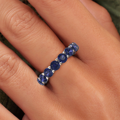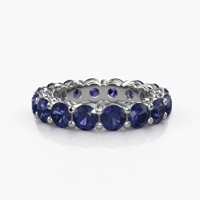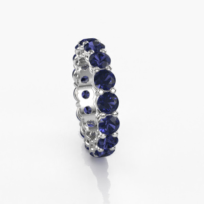 This is our Michelle full 4.2 ring. This specific type is called an eternity ring and it is set with a continuous line of identically cut gemstones. The ring is made in 14 Carat white gold and is set with small sapphire, 4.2 mm. This white gold Eternity ring is a perfectly beautiful and meaningful way to give your proposal that special touch. The magnificent evenly shaped sapphire are pave set around the ring. The identical sapphire are carefully selected to give the ring a maximum effect. Do keep in mind we use natural resources so small differences between stones are common. The special effect is enhanced due to precise positioning of the sapphire. This requires the utmost precision and a skilful hand but for our skilled artisans this is what excites them. The result is a stackable ring with a row of sapphire which seem to have no beginning nor end. The perfect symbol of your love for her! Isn't she a beauty?After receiving your order, our goldsmiths will start the creative process of making your Michelle full 4.2 ring. We don't keep stock. This is advantageous because these costs will not be passed on to you. Therefore, we can offer jewellery at exceptionally low prices.New jewellery designs are added to our online collection daily. Our team of passionate designers strive to create extraordinary and diverse designs. Have you seen a ring you like? Please feel free to contact us. Based on a good price/ quality ratio, we will make you an offer you can't refuse!To make it easier for you, we offer a 30 day return policy. Check our terms and conditions.
