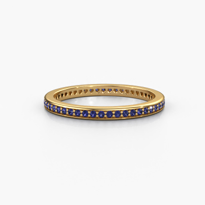 This is our Elvire 1 ring. This specific type is called an eternity ring and it is set with a continuous line of identically cut gemstones. The ring is made in 14 Carat gold and is set with small sapphire, 1.1 mm. This gold Eternity ring is a perfectly beautiful and meaningful way to give your proposal that special touch. The magnificent evenly shaped sapphire are pave set around the ring. The identical sapphire are carefully selected to give the ring a maximum effect. Do keep in mind we use natural resources so small differences between stones are common. The special effect is enhanced due to precise positioning of the sapphire. This requires the utmost precision and a skilful hand but for our skilled artisans this is what excites them. The result is a stackable ring with a row of sapphire which seem to have no beginning nor end. The perfect symbol of your love for her! Isn't she a beauty?After receiving your order, our goldsmiths will start the creative process of making your Elvire 1 ring. We don't keep stock. This is advantageous because these costs will not be passed on to you. Therefore, we can offer jewellery at exceptionally low prices.New jewellery designs are added to our online collection daily. Our team of passionate designers strive to create extraordinary and diverse designs. Have you seen a ring you like? Please feel free to contact us. Based on a good price/ quality ratio, we will make you an offer you can't refuse!To make it easier for you, we offer a 30 day return policy. Check our terms and conditions.