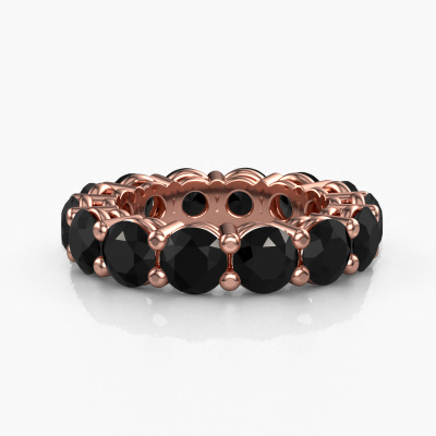 This is our Michelle full 5.0 ring. This specific type is called an eternity ring and it is set with a continuous line of identically cut gemstones. The ring is made in 14 Carat rose gold and is set with small black diamonds, 9.00 crt. The amazing black diamonds are identical in size and are set in the ring band. Our black diamonds are selected with great care so they are identical, which gives the best result. In order to get the best result, our artisans position all black diamonds by hand with the utmost care. Our Goldsmiths have one ambition, which is creating the perfect ring. That is why we love what we do. In the end you get a stunning exclusive rose gold stackable ring with a row of black diamonds which seem to have no beginning nor end. The perfect symbol of your undying love for her! How special is that!By using a combination of the latest modern techniques, combined with ancient crafting, we can make all our rings in our own studio. Each jewel is made to order. This is advantageous because we can offer you a price you won't find anywhere else.New jewellery designs are added to our online collection daily. Our team of passionate designers strive to create extraordinary and diverse designs. Have you seen a ring you like? Please feel free to contact us. Based on a good price/ quality ratio, we will make you an offer you can't refuse!To make it easier for you, we offer a 30 day return policy. Check our terms and conditions.