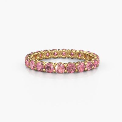 This is our Heddy rnd 2.7 ring. This specific type is called an eternity ring and it is set with a continuous line of identically cut gemstones. The ring is made in 14 Carat gold and is set with small tourmaline pink, 2.7 mm. This gold Eternity ring is a perfectly beautiful and meaningful way to give your proposal that special touch. The magnificent evenly shaped tourmaline pink are pave set around the ring. The identical tourmaline pink are carefully selected to give the ring a maximum effect. Do keep in mind we use natural resources so small differences between stones are common. The special effect is enhanced due to precise positioning of the tourmaline pink. This requires the utmost precision and a skilful hand but for our skilled artisans this is what excites them. The result is a stackable ring with a row of tourmaline pink which seem to have no beginning nor end. The perfect symbol of your love for her! Isn't she a beauty?Because we design and deliver our own rings, we can offer you a ring at a price you won't find anywhere else. A ring is made to order, which helps prevent excess supplies, so we can make you a great price offer. We understand it feels risky, buying your ring online, but we will gladly assist in the designing process, taking your budget into consideration.Our team of talented, passionate designers add new ring designs to our online collection daily. Our objective in doing so, is to be able to offer you a wide variety of jewels. Please feel free to request a quote if you have specific wishes for your ring. We guarantee to make you an offer you can't refuse.To make it easier for you, we offer a 30 day return policy. Check our terms and conditions.