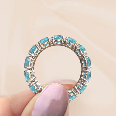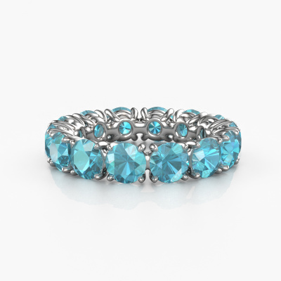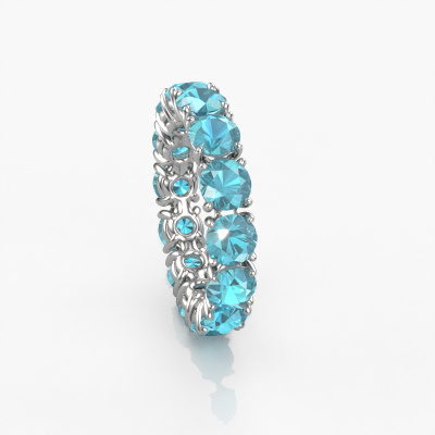 This is our Vivienne 4.7 ring. This specific type is called an eternity ring and it is set with a continuous line of identically cut gemstones. The ring is made in 14 Carat white gold and is set with small blue topaz, 4.7 mm. The amazing blue topaz are identical in size and are set in the ring band. Our blue topaz are selected with great care so they are identical, which gives the best result. In order to get the best result, our artisans position all blue topaz by hand with the utmost care. Our Goldsmiths have one ambition, which is creating the perfect ring. That is why we love what we do. In the end you get a stunning exclusive white gold ring with a row of blue topaz which seem to have no beginning nor end. The perfect symbol of your undying love for her! How special is that!After receiving your order, our goldsmiths will passionately start the creative process of making your ring in our own studio. Because we don't have a big stockpile, these costs will not be passed on to you. Our pricing is proof of that! We offer top quality jewels at lowest price, guaranteed.Our talented designers add new designs to our online collection daily. Together they create a diverse collection of the finest jewellery. If you prefer to make a ring according your own design, please feel free to request a quote. We will make you an amazing offer, based on quality and price.To make it easier for you, we offer a 30 day return policy. Check our terms and conditions.