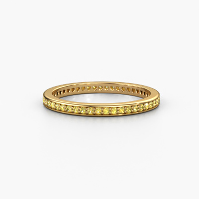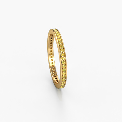 This is our Elvire 1 ring. This specific type is called an eternity ring and it is set with a continuous line of identically cut gemstones. The ring is made in 14 Carat gold and is set with small yellow sapphire, 1.1 mm. This gold Eternity ring is a perfectly beautiful and meaningful way to give your proposal that special touch. The magnificent evenly shaped yellow sapphire are pave set around the ring. The identical yellow sapphire are carefully selected to give the ring a maximum effect. Do keep in mind we use natural resources so small differences between stones are common. The special effect is enhanced due to precise positioning of the yellow sapphire. This requires the utmost precision and a skilful hand but for our skilled artisans this is what excites them. The result is a stackable ring with a row of yellow sapphire which seem to have no beginning nor end. The perfect symbol of your love for her! Isn't she a beauty?After receiving your order, our goldsmiths will start the creative process of making your Elvire 1 ring. We don't keep stock. This is advantageous because these costs will not be passed on to you. Therefore, we can offer jewellery at exceptionally low prices.New jewellery designs are added to our online collection daily. Our team of passionate designers strive to create extraordinary and diverse designs. Have you seen a ring you like? Please feel free to contact us. Based on a good price/ quality ratio, we will make you an offer you can't refuse!To make it easier for you, we offer a 30 day return policy. Check our terms and conditions.