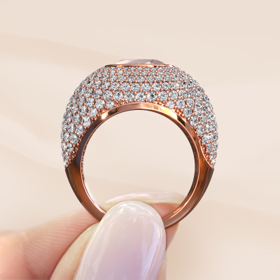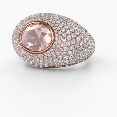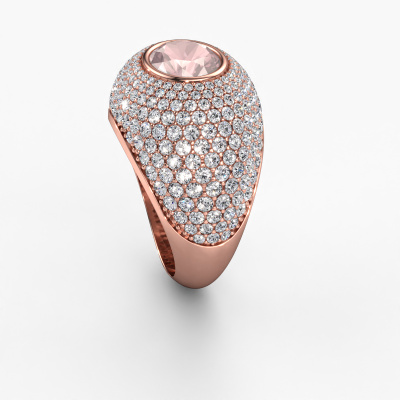 Are you looking for a pavé set ring with an eye-catching single gemstone? How do you like this Armida ring? This rose gold Armida ring is set with a beautiful 9x7 mm oval morganite champagne. The morganite champagne is carefully selected by our morganite champagne suppliers. Subsequently, these gemstones are then set by our goldsmith according to ancient tradition. The ring will then be polished to perfection creating a unique ring with a stunning morganite champagne. Created especially for you. How do you like this exclusive rose gold ring? Simply customize this Armida ring, using our online tool. Subsequently, your personal pavé set Armida ring will be made by hand by our goldsmiths. Precious metals and gemstones can be customized to your liking. Do you have specific preferences which are unavailable in our online tool? Please feel free to contact us. We will customize your personal exclusive ring to your liking.Because we design and deliver our own rings, we can offer you a ring at a price you won't find anywhere else. A ring is made to order, which helps prevent excess supplies, so we can make you a great price offer. We understand it feels risky, buying your ring online, but we will gladly assist in the designing process, taking your budget into consideration.To make it easier for you, we offer a 30 day return policy. Check our terms and conditions.