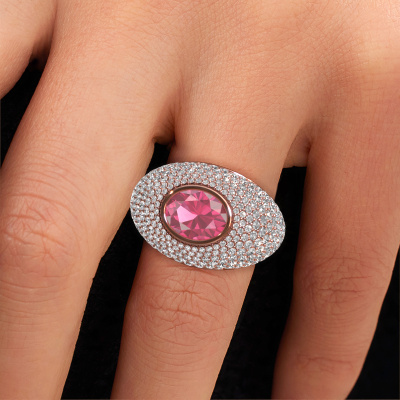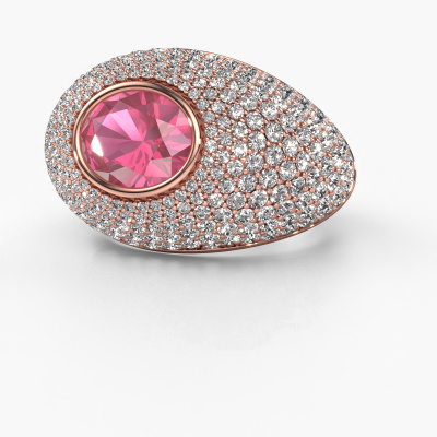 Are you looking for a pavé set ring with an eye-catching single gemstone? How do you like this Armida ring? This rose gold Armida ring is set with a beautiful 9x7 mm oval pink sapphire. The pink sapphire is carefully selected by our pink sapphire suppliers. Subsequently, these gemstones are then set by our goldsmith according to ancient tradition. The ring will then be polished to perfection creating a unique ring with a stunning pink sapphire. Created especially for you. How do you like this exclusive rose gold ring? Simply customize this Armida ring, using our online tool. Subsequently, your personal pavé set Armida ring will be made by hand by our goldsmiths. Precious metals and gemstones can be customized to your liking. Do you have specific preferences which are unavailable in our online tool? Please feel free to contact us. We will customize your personal exclusive ring to your liking.Because we design and deliver our own rings, we can offer you a ring at a price you won't find anywhere else. A ring is made to order, which helps prevent excess supplies, so we can make you a great price offer. We understand it feels risky, buying your ring online, but we will gladly assist in the designing process, taking your budget into consideration.To make it easier for you, we offer a 30 day return policy. Check our terms and conditions.