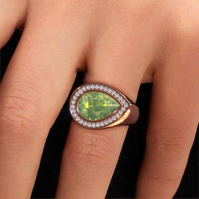 Are you looking for a special ring with an eye-catching single gemstone? How do you like this Latashia ring? This rose gold Latashia ring is set with a beautiful 12x8 mm pear peridot. The peridot is carefully selected by our peridot suppliers. Subsequently, these gemstones are then set by our goldsmith according to ancient tradition. The ring will then be polished to perfection creating a unique ring with a stunning peridot. Created especially for you. Customize your own specialLatashia ring, which will then be created by our goldsmiths with great passion. Do you prefer a different option than is shown here in the rose gold Latashia ring? Then our online tools offers various options. Feel free to ask us for help if you are unable to succeed. We are happy to answer your questions!By using a combination of the latest modern techniques, combined with ancient crafting, we can make all our rings in our own studio. Each jewel is made to order. This is advantageous because we can offer you a price you won't find anywhere else.To make it easier for you, we offer a 30 day return policy. Check our terms and conditions.