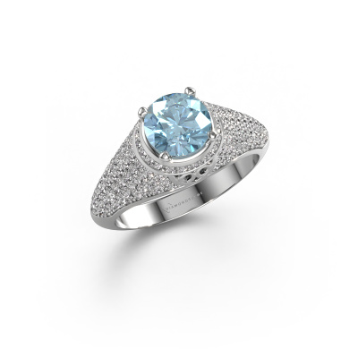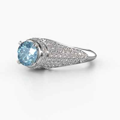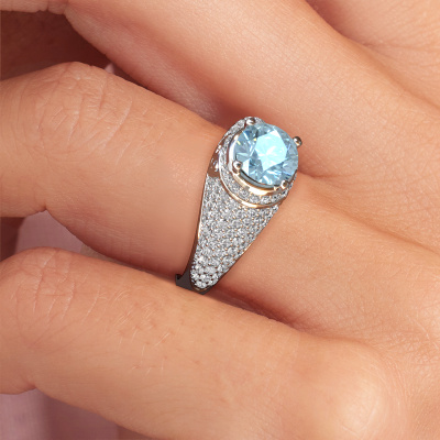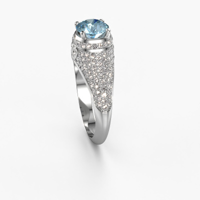 This exclusive platinum Sharee ring is a true work of art! This ring is made of platinum and is set with 6.5 mm round blue lab grown diamond. The smallest ornaments are crafted by our goldsmith with a lot of patience and great passion. In order to create this ring with great precision, this craft requires a keen eye and a skilful hand. A challenge which ignites a fire in our expert goldsmiths. The exquisite blue lab grown diamonds are set in a way that their unique qualities are strengthened. This gives the ring an even more glamorous appearance. The ring is unique by itself though, because of the natural birthstones we selected especially for this Sharee ring. And by choosing the precious metal yourself, you create a unique ring. The special sharee ring, as shown here, can be customized to your liking. Our online tool offers many different options but please feel free to contact us if you want changes made to your sharee ring, which are unavailable in our online tool.Because we design and deliver our own rings, we can offer you a ring at a price you won't find anywhere else. A ring is made to order, which helps prevent excess supplies, so we can make you a great price offer. We understand it feels risky, buying your ring online, but we will gladly assist in the designing process, taking your budget into consideration.To make it easier for you, we offer a 30 day return policy. Check our terms and conditions.