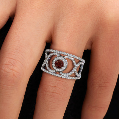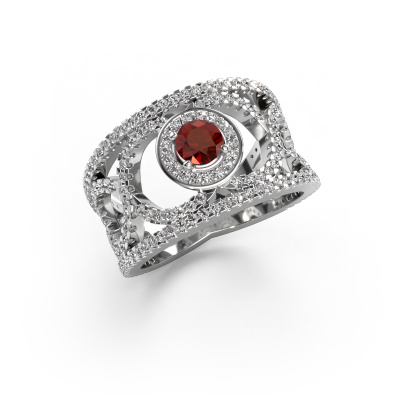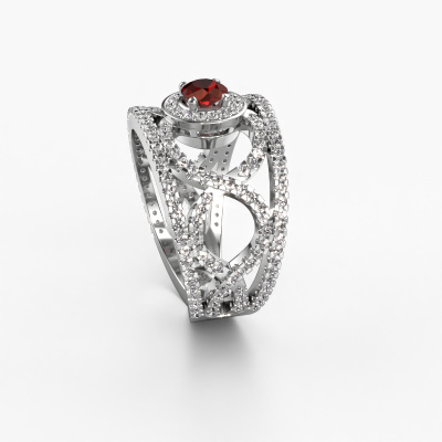 This exclusive platinum Regina ring is a true work of art! This ring is made of platinum and is set with 4.2 mm round garnet. The smallest ornaments are crafted by our goldsmith with a lot of patience and great passion. In order to create this ring with great precision, this craft requires a keen eye and a skilful hand. A challenge which ignites a fire in our expert goldsmiths. The exquisite garnet are set in a way that their unique qualities are strengthened. This gives the ring an even more glamorous appearance. The ring is unique by itself though, because of the natural birthstones we selected especially for this Regina ring. And by choosing the precious metal yourself, you create a unique ring. How do you like this exclusive platinum ring? Simply customize this Regina ring, using our online tool. Subsequently, your personal special Regina ring will be made by hand by our goldsmiths. Precious metals and gemstones can be customized to your liking. Do you have specific preferences which are unavailable in our online tool? Please feel free to contact us. We will customize your personal exclusive ring to your liking.By using our modern techniques, we can design and customize the finest quality jewels with the utmost care for you. Our rings are always priced 30 percent lower than other jewellers. We make rings to order, so we don't have to maintain a large stock. If you have a certain budget, we are more than happy to advice you accordingly.To make it easier for you, we offer a 30 day return policy. Check our terms and conditions.