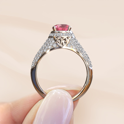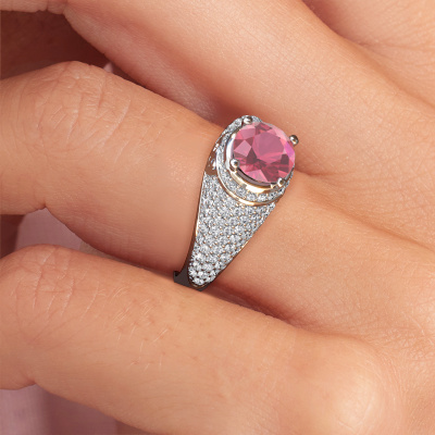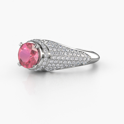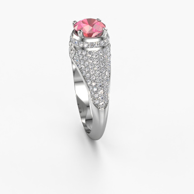 This exclusive platinum Sharee ring is a true work of art! This ring is made of platinum and is set with 6.5 mm round tourmaline pink. The smallest ornaments are crafted by our goldsmith with a lot of patience and great passion. In order to create this ring with great precision, this craft requires a keen eye and a skilful hand. A challenge which ignites a fire in our expert goldsmiths. The exquisite tourmaline pink are set in a way that their unique qualities are strengthened. This gives the ring an even more glamorous appearance. The ring is unique by itself though, because of the natural birthstones we selected especially for this Sharee ring. And by choosing the precious metal yourself, you create a unique ring. The special sharee ring, as shown here, can be customized to your liking. Our online tool offers many different options but please feel free to contact us if you want changes made to your sharee ring, which are unavailable in our online tool.Because we design and deliver our own rings, we can offer you a ring at a price you won't find anywhere else. A ring is made to order, which helps prevent excess supplies, so we can make you a great price offer. We understand it feels risky, buying your ring online, but we will gladly assist in the designing process, taking your budget into consideration.To make it easier for you, we offer a 30 day return policy. Check our terms and conditions.