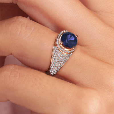 This exclusive rose gold Sharee ring is a true work of art! This ring is made of 14 Carat rose gold and is set with 6.5 mm round sapphire. The smallest ornaments are crafted by our goldsmith with a lot of patience and great passion. In order to create this ring with great precision, this craft requires a keen eye and a skilful hand. A challenge which ignites a fire in our expert goldsmiths. The exquisite sapphire are set in a way that their unique qualities are strengthened. This gives the ring an even more glamorous appearance. The ring is unique by itself though, because of the natural birthstones we selected especially for this Sharee ring. And by choosing the precious metal yourself, you create a unique ring. The special sharee ring, as shown here, can be customized to your liking. Our online tool offers many different options but please feel free to contact us if you want changes made to your sharee ring, which are unavailable in our online tool.Because we design and deliver our own rings, we can offer you a ring at a price you won't find anywhere else. A ring is made to order, which helps prevent excess supplies, so we can make you a great price offer. We understand it feels risky, buying your ring online, but we will gladly assist in the designing process, taking your budget into consideration.To make it easier for you, we offer a 30 day return policy. Check our terms and conditions.
