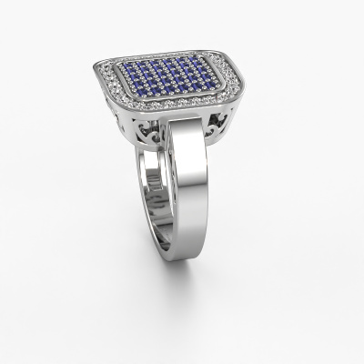 This exclusive white gold Beatrice ring is a true work of art! This ring is made of 14 Carat white gold and is set with 1.3 mm round sapphire. The smallest ornaments are crafted by our goldsmith with a lot of patience and great passion. In order to create this ring with great precision, this craft requires a keen eye and a skilful hand. A challenge which ignites a fire in our expert goldsmiths. The exquisite sapphire are set in a way that their unique qualities are strengthened. This gives the ring an even more glamorous appearance. The ring is unique by itself though, because of the natural birthstones we selected especially for this Beatrice ring. And by choosing the precious metal yourself, you create a unique ring. The pavé set Beatrice ring, as shown here, can be customized to your liking. Our online tool offers many different options but please feel free to contact us if you want changes made to your Beatrice ring, which are unavailable in our online tool.After receiving your order, our goldsmiths will start the creative process of making your Beatrice ring. We don't keep stock. This is advantageous because these costs will not be passed on to you. Therefore, we can offer jewellery at exceptionally low prices.To make it easier for you, we offer a 30 day return policy. Check our terms and conditions.