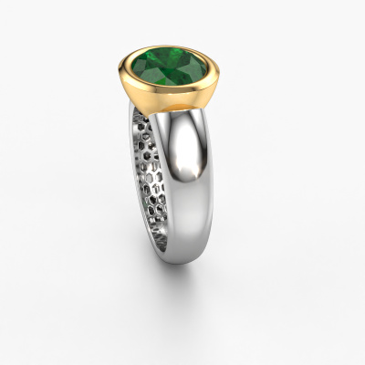 Are you looking for a tasteful ring with an eye-catching single gemstone? How do you like this Evelyne ring? This white gold Evelyne ring is set with a beautiful 10x8 mm oval emerald. The emerald is carefully selected by our emerald suppliers. Subsequently, these gemstones are then set by our goldsmith according to ancient tradition. The ring will then be polished to perfection creating a unique ring with a stunning emerald. Created especially for you. A customized fantasy ring is the perfect gift! New exquisite designs are added daily by our team of passionate goldsmiths. And each design can be customized. Simply customize the precious metals and the colour of gemstones which will be used, for example. This makes your design of the fantasy Evelyne ring truly unique!By using a combination of the latest modern techniques, combined with ancient crafting, we can make all our rings in our own studio. Each jewel is made to order. This is advantageous because we can offer you a price you won't find anywhere else.To make it easier for you, we offer a 30 day return policy. Check our terms and conditions.